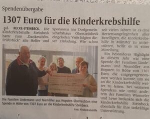 Auch dieses Jahr versuchen wir an den Erfolg vom letzten Jahr anzuknüpfen und verkaufen am 14.12.24 wieder unsere leckere Erbsensuppe. Der Erlös kommt komplett der Kinderkrebshilfe zu gute.